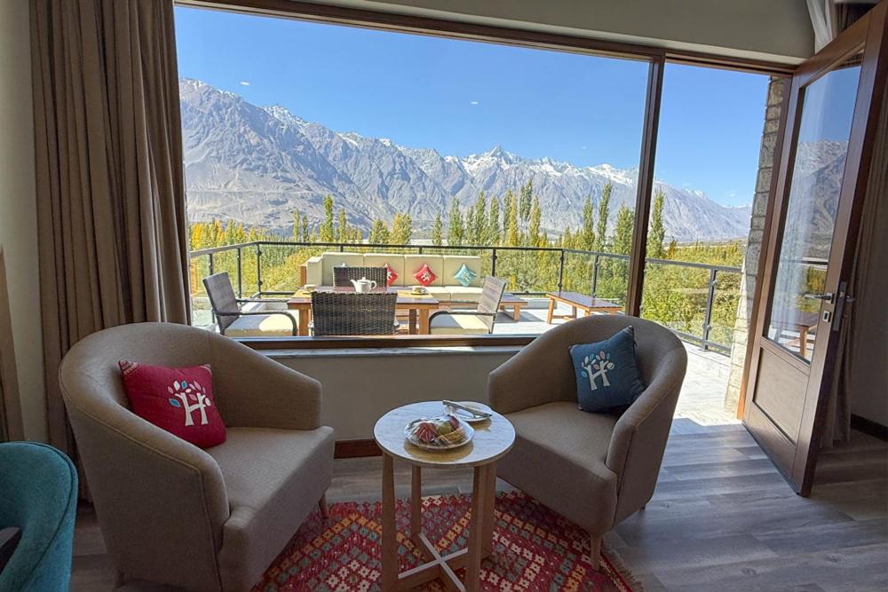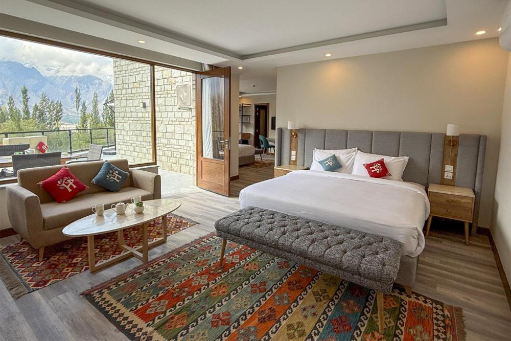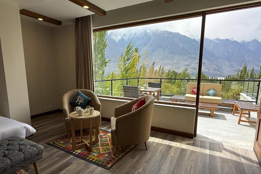 Cozy Accommodations: Family rooms with garden or mountain views are available at Skardu's Hashupi Resort Shigar. Every room has a private bathroom, air conditioning, and contemporary conveniences.